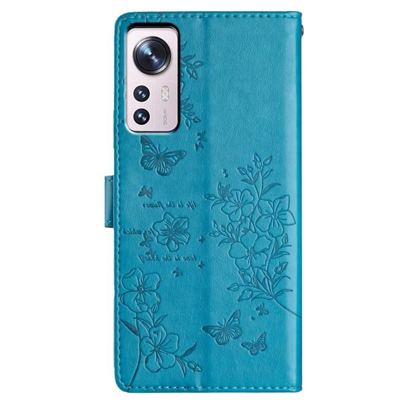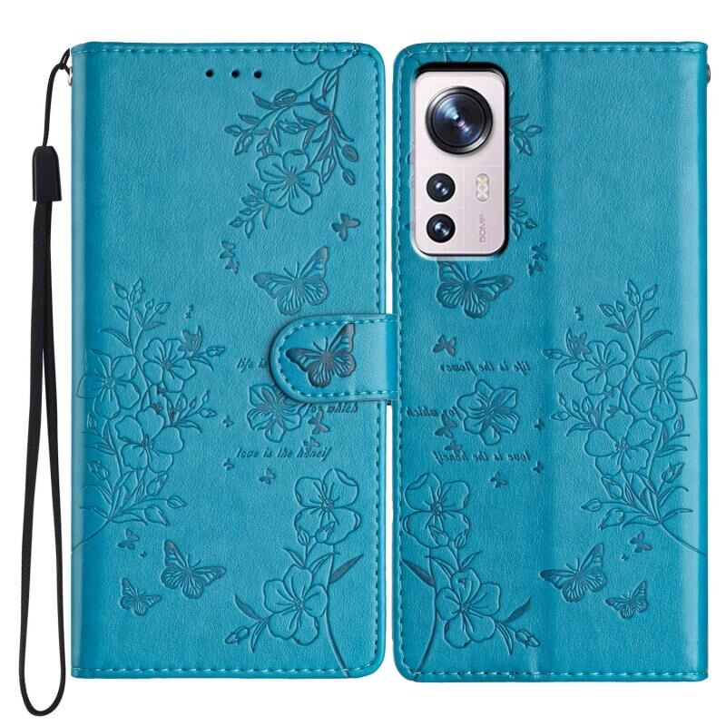 Θήκη τηλεφώνου από δέρμα με πεταλούδες και λουλούδια για Xiaomi 12 Pro (Χρυσό)