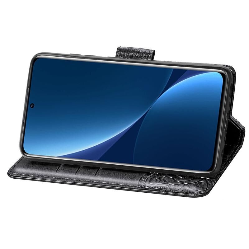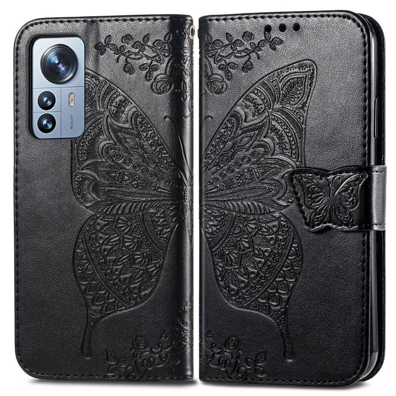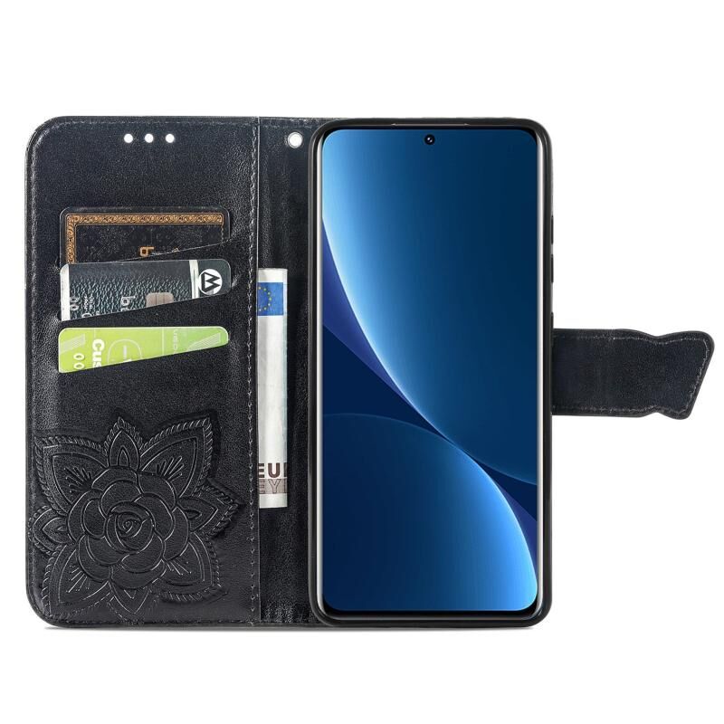 Θήκη τηλεφώνου από δέρμα με ανάγλυφο σχέδιο πεταλούδας και λουλουδιών για Xiaomi 12 Pro (Μαύρο)