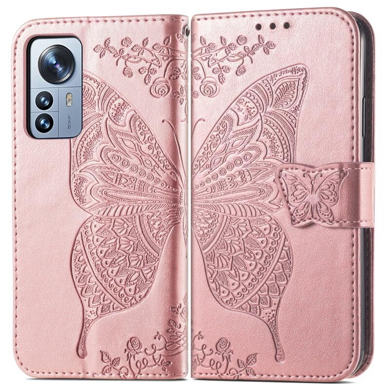 Θήκη τηλεφώνου από δέρμα με ανάγλυφο σχέδιο πεταλούδας και λουλουδιών για Xiaomi 12 Pro (Μαύρο)