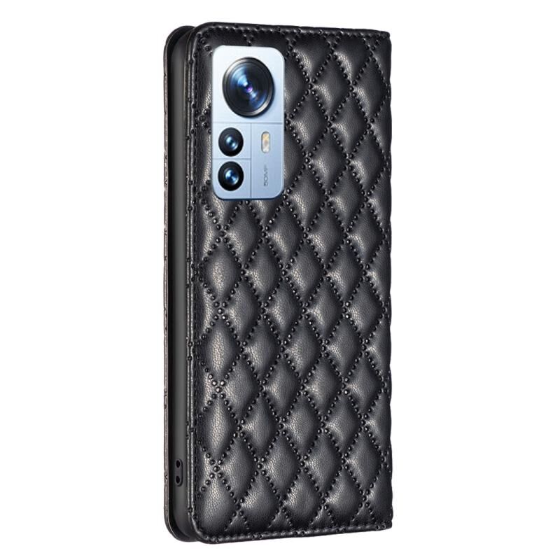 Για Xiaomi 12 Pro Diamond Lattice Μαγνητική δερμάτινη θήκη Flip Phone Case (Μαύρο)