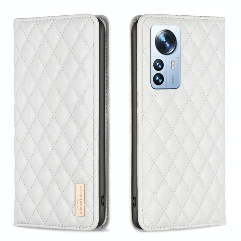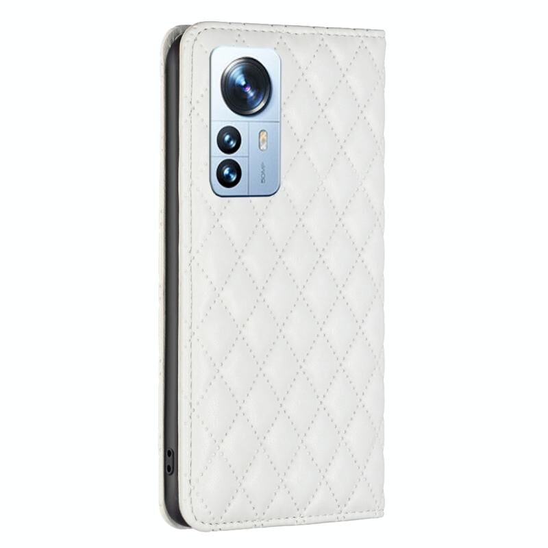 Για Xiaomi 12 Pro Diamond Lattice Μαγνητική δερμάτινη θήκη Flip Phone Case (Λευκό)