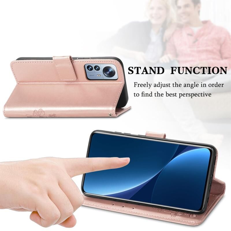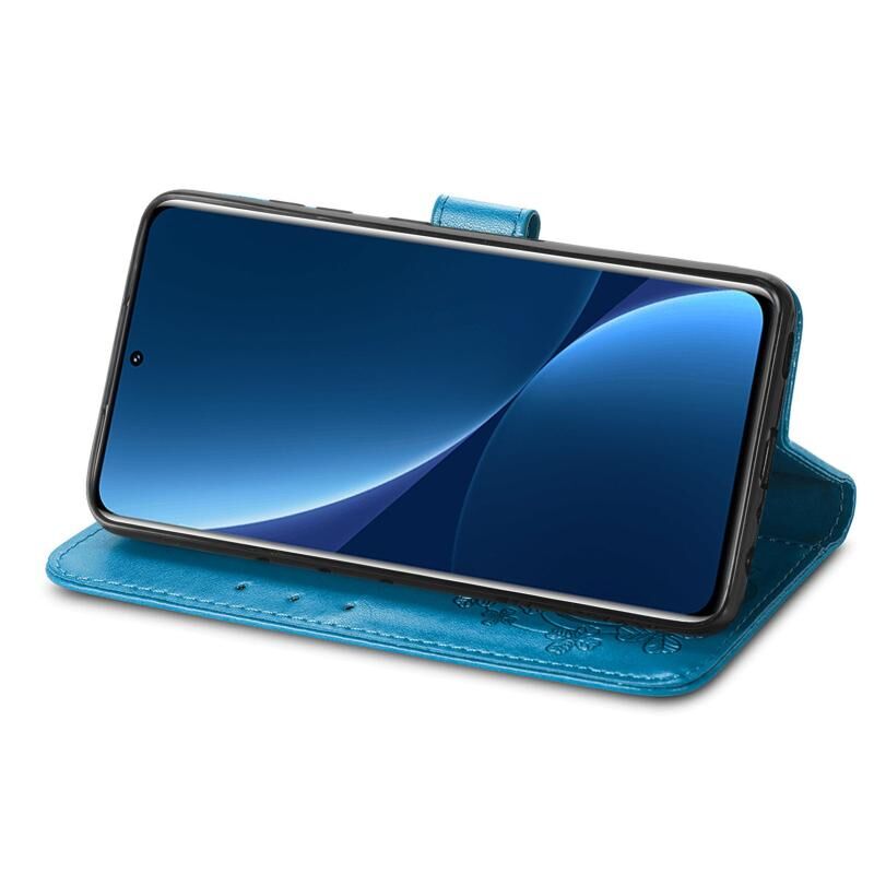Για Xiaomi 12 Pro τετράφυλλο κούμπωμα ανάγλυφο πόρπη δερμάτινη θήκη τηλεφώνου (μπλε)