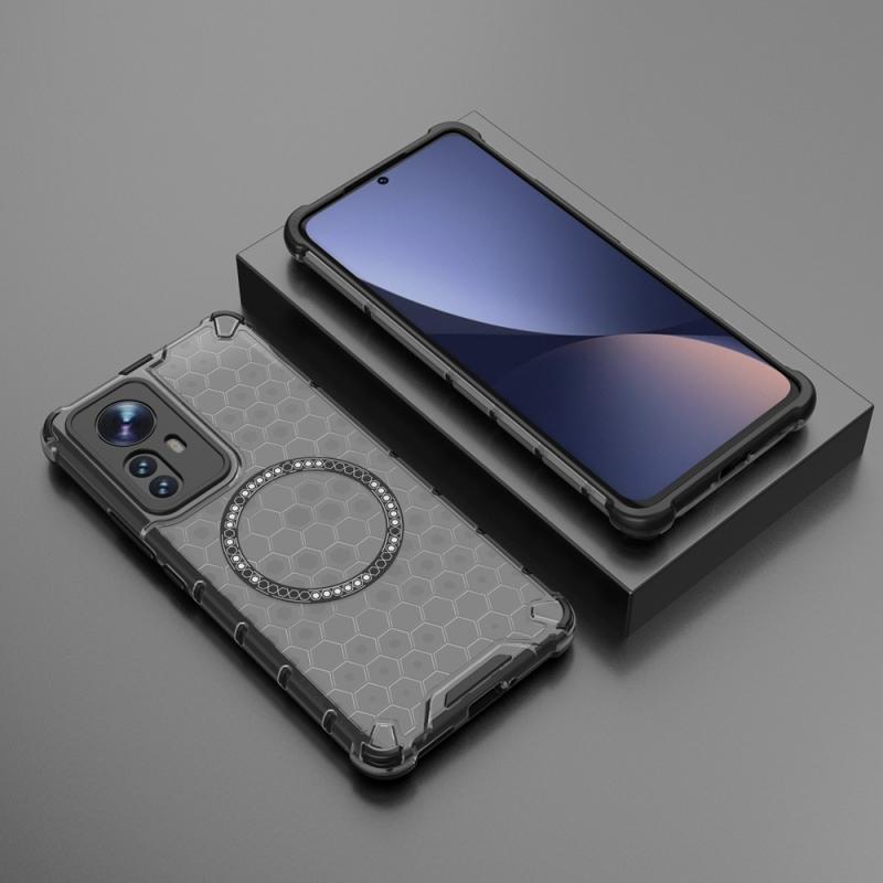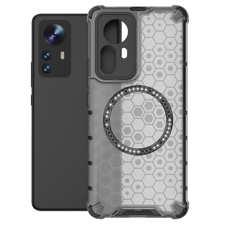 For Xiaomi 12 Pro Honeycomb Magnetic Ring Shockproof Phone Case(Black)