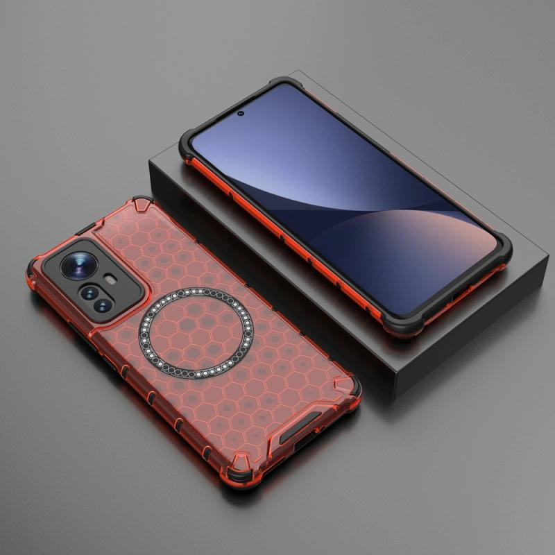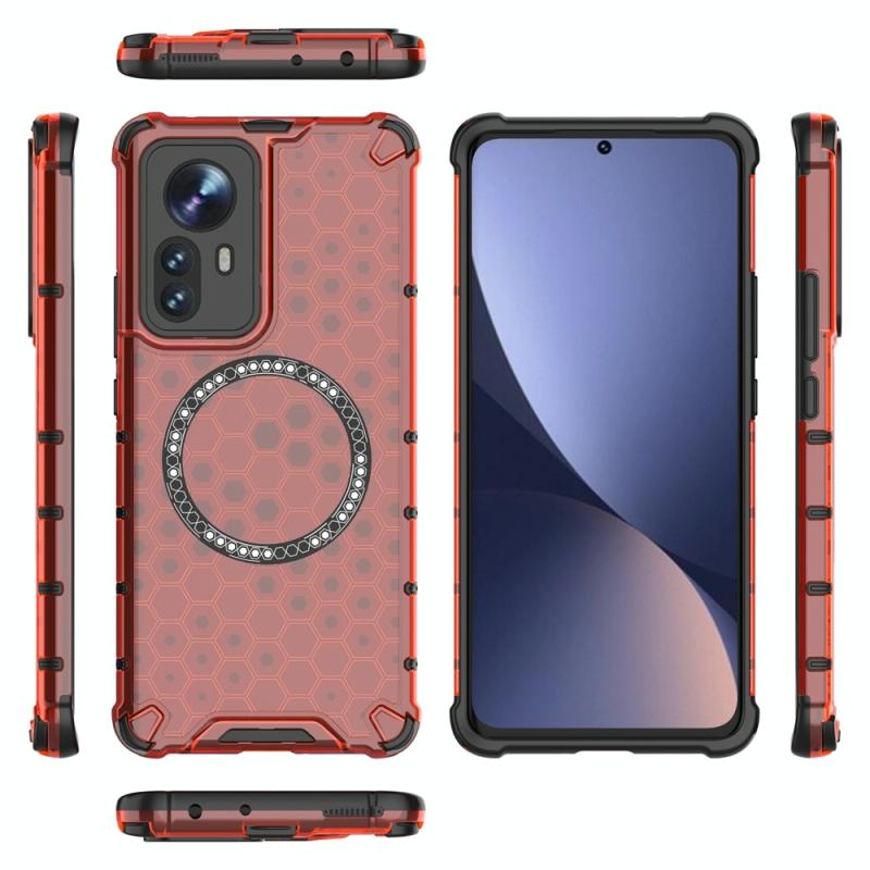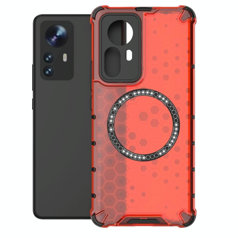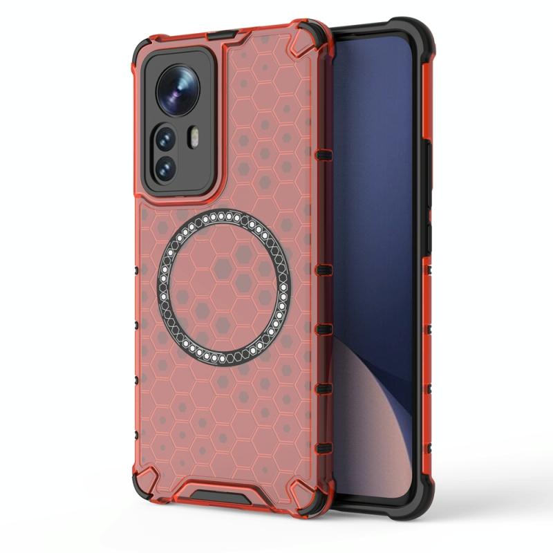 For Xiaomi 12 Pro Honeycomb Magnetic Ring Shockproof Phone Case(Red)