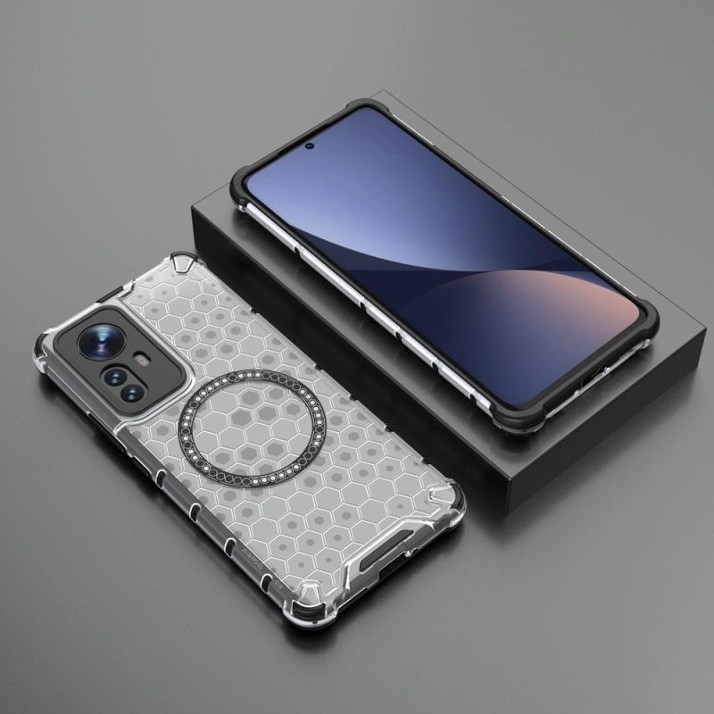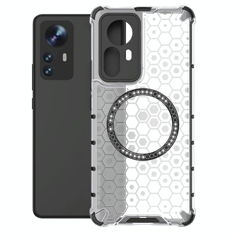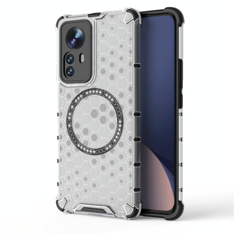 For Xiaomi 12 Pro Honeycomb Magnetic Ring Shockproof Phone Case(White)