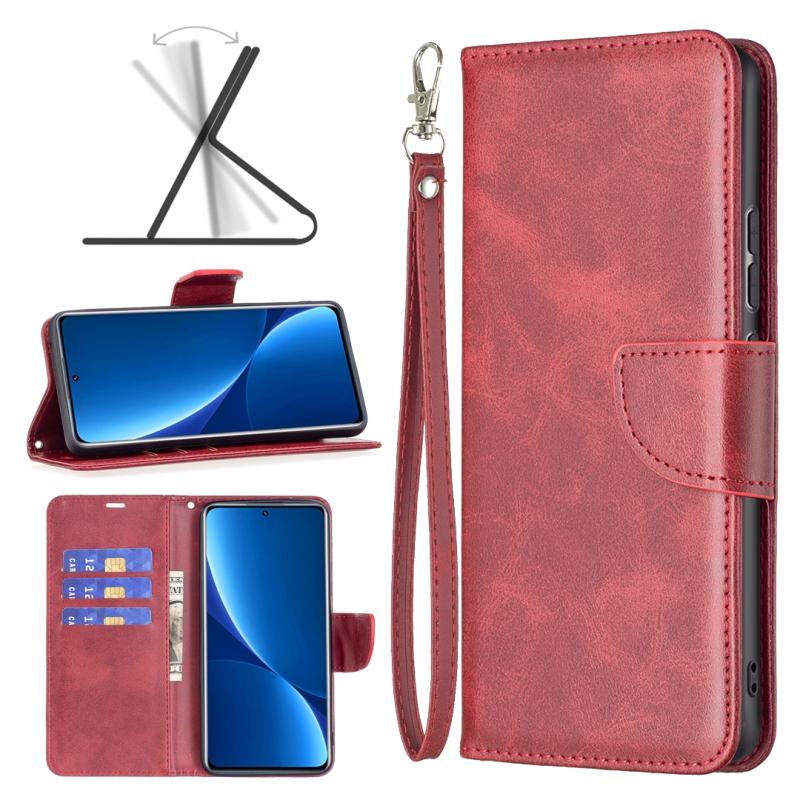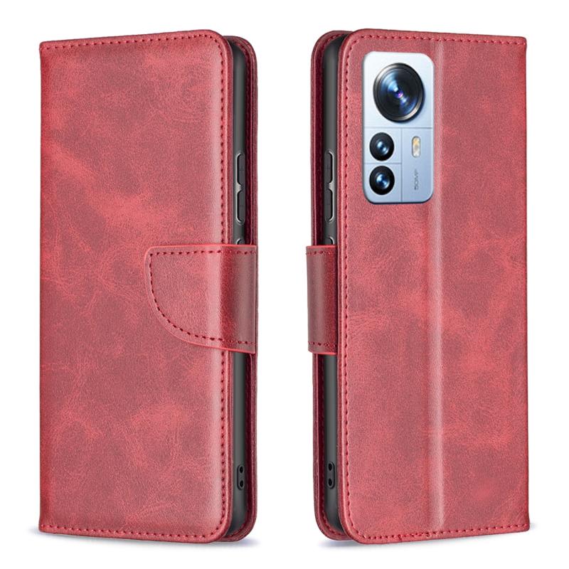 Θήκη τηλεφώνου από γνήσιο δέρμα με υφή δέρματος αρνιού για Xiaomi 12 Pro (Μαύρο)