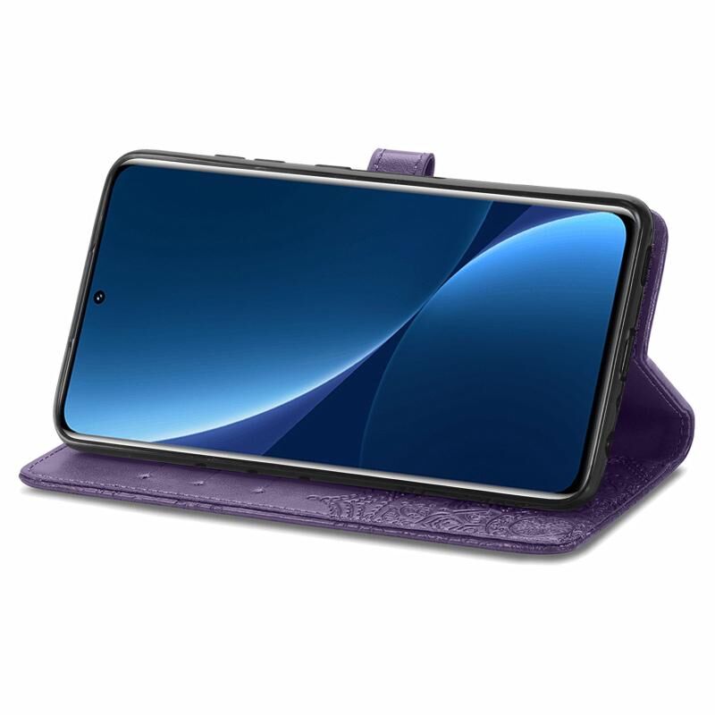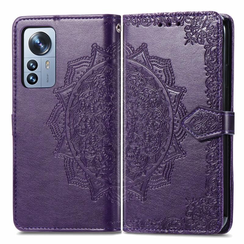 Για Xiaomi 12 Pro Mandala λουλούδι ανάγλυφο οριζόντια Flip δέρμα τηλέφωνο υπόθεση (μωβ)