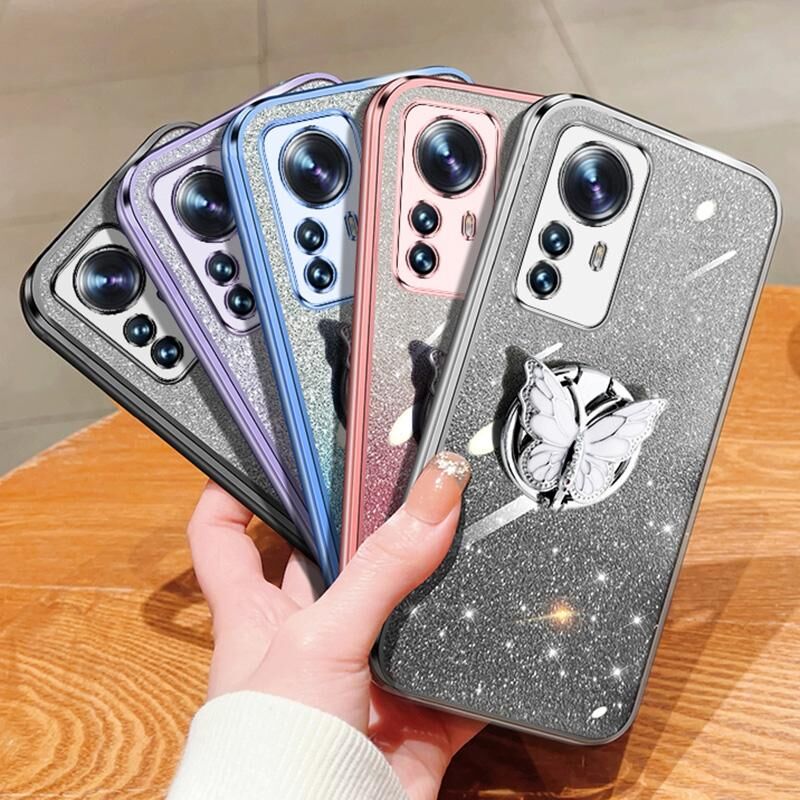 Θήκη κινητού τηλεφώνου TPU με σχέδιο πεταλούδας, γυαλιστερό ντεγκραντέ, επιμεταλλωμένο για Xiaomi 12 Pro (ρόζ)