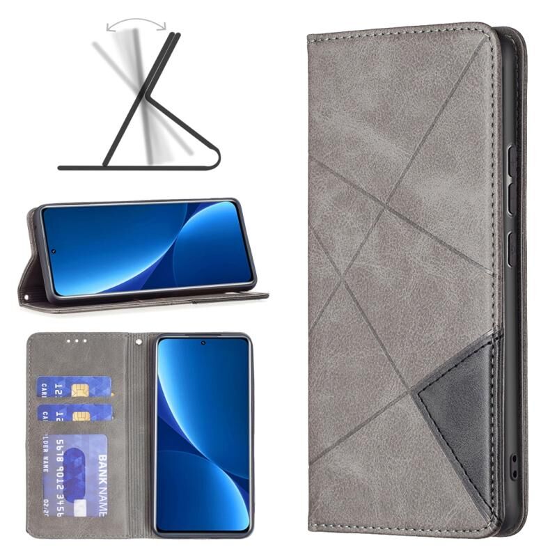 Για Xiaomi 12 Pro Prismatic Invisible Μαγνητική δερμάτινη θήκη τηλεφώνου (Γκρι)