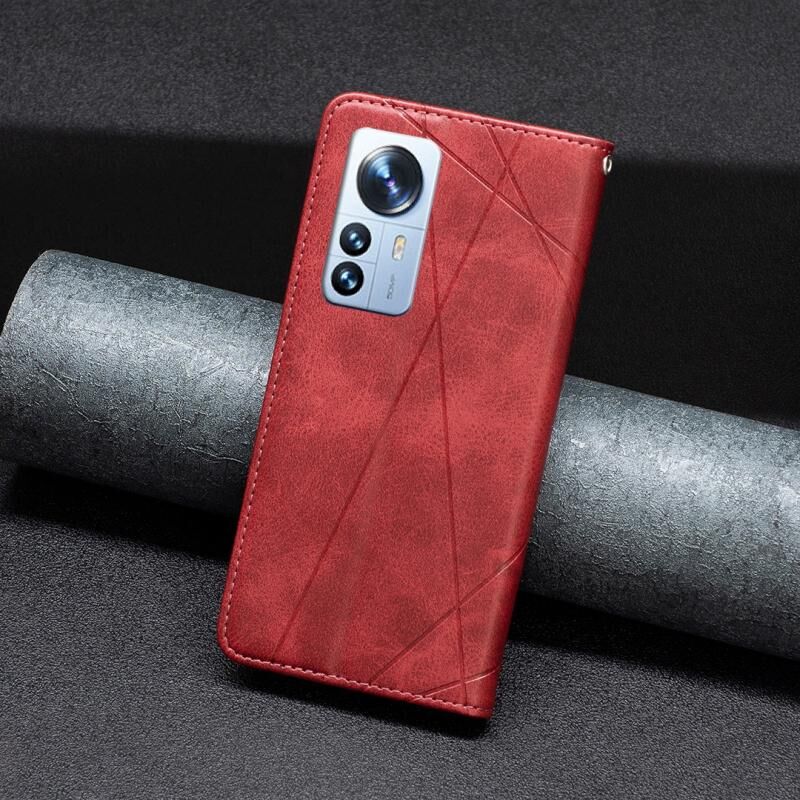 Για Xiaomi 12 Pro Prismatic Invisible μαγνητική δερμάτινη θήκη τηλεφώνου (κόκκινο)