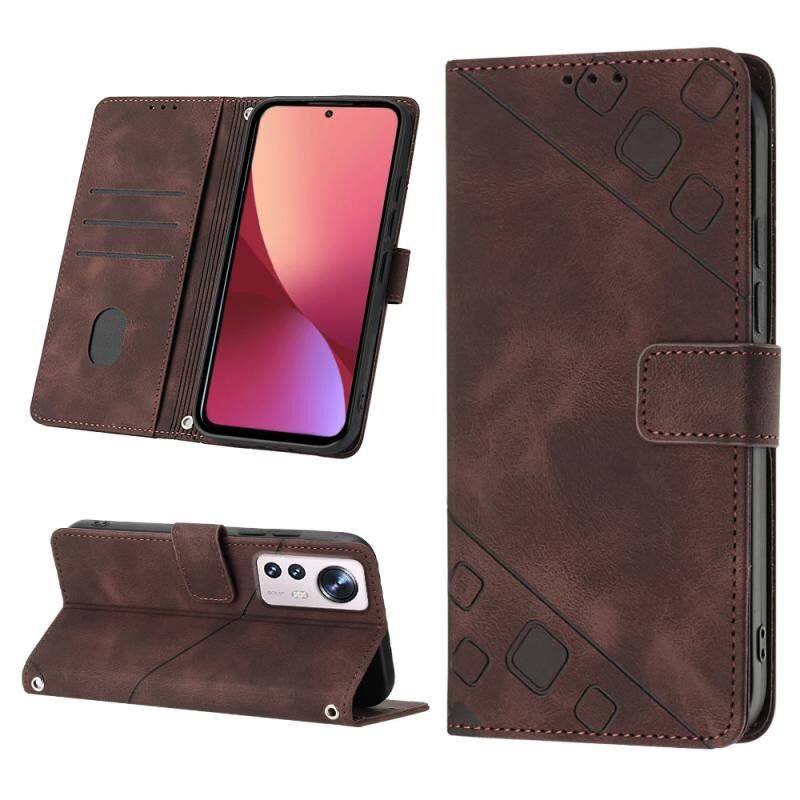 Για Xiaomi 12 Pro Skin-feel ανάγλυφη δερμάτινη θήκη τηλεφώνου (καφέ)