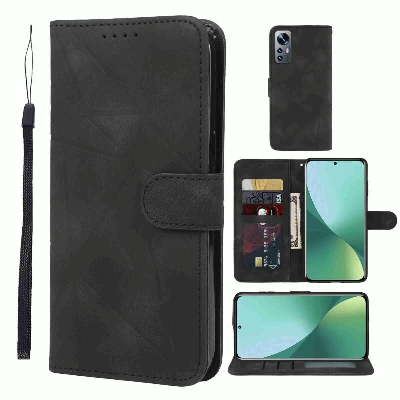 Για Xiaomi 12 Pro Skin Feel γεωμετρικές γραμμές δερμάτινη θήκη τηλεφώνου (μαύρο)