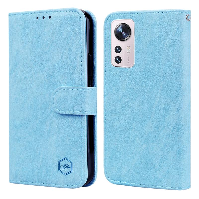 For Xiaomi 12 Pro Skin Feeling Oil Leather Texture PU + TPU Phone Case(Light Blue)