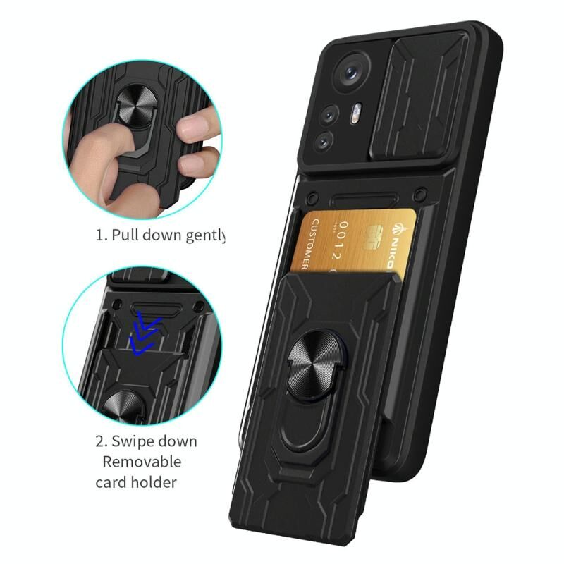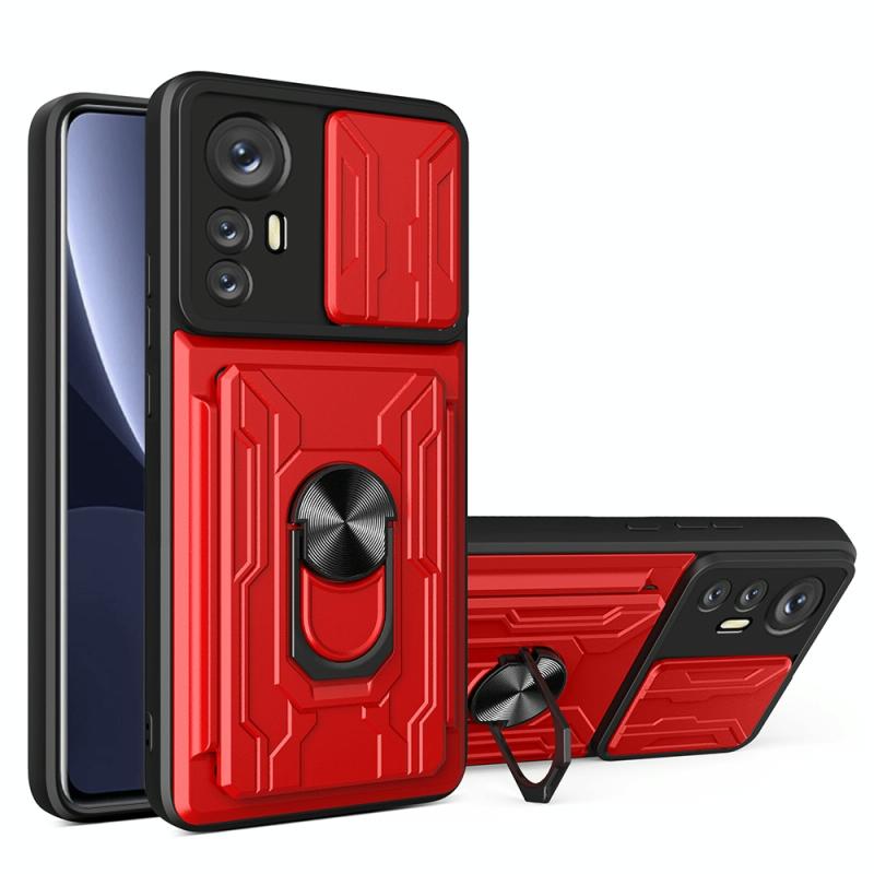 Θήκη κινητού τηλεφώνου για Xiaomi 12 Pro με συρόμενο προστατευτικό κάμερας Camshield, κατασκευασμένη από TPU+PC (Μαύρο) με υποδοχή για κάρτες. (Κόκκινο)