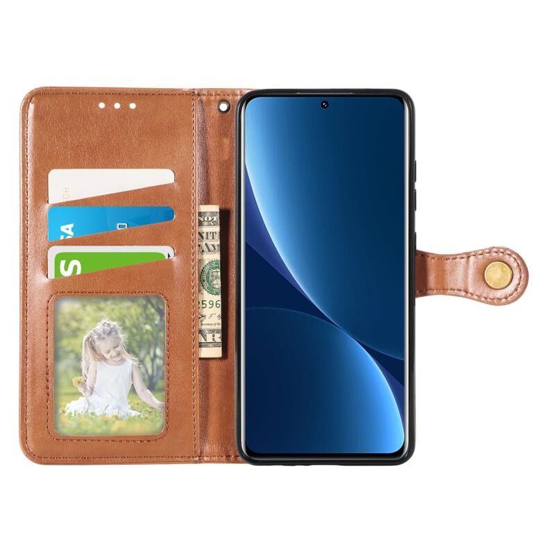Για Xiaomi 12 Pro Solid Color δέρμα πόρπη υπόθεση τηλεφώνου (καφέ)