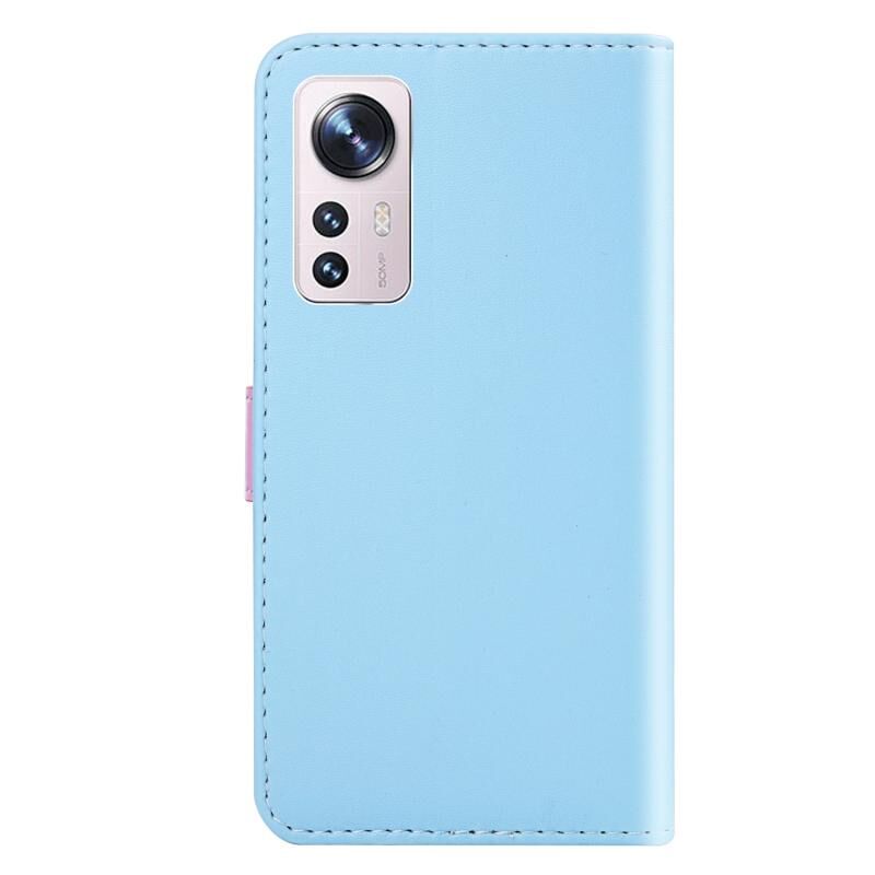 Για Xiaomi 12 Pro τρίχρωμη ραφή οριζόντια Flip δέρμα τηλέφωνο υπόθεση (Μπλε)