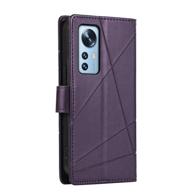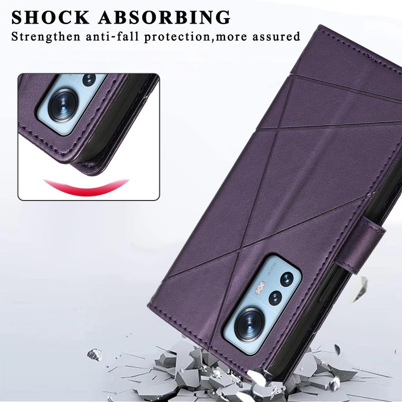Θήκη τηλεφώνου Xiaomi 12 PU με γνήσια υφή δέρματος και ανάγλυφο σχέδιο (Μαύρο)