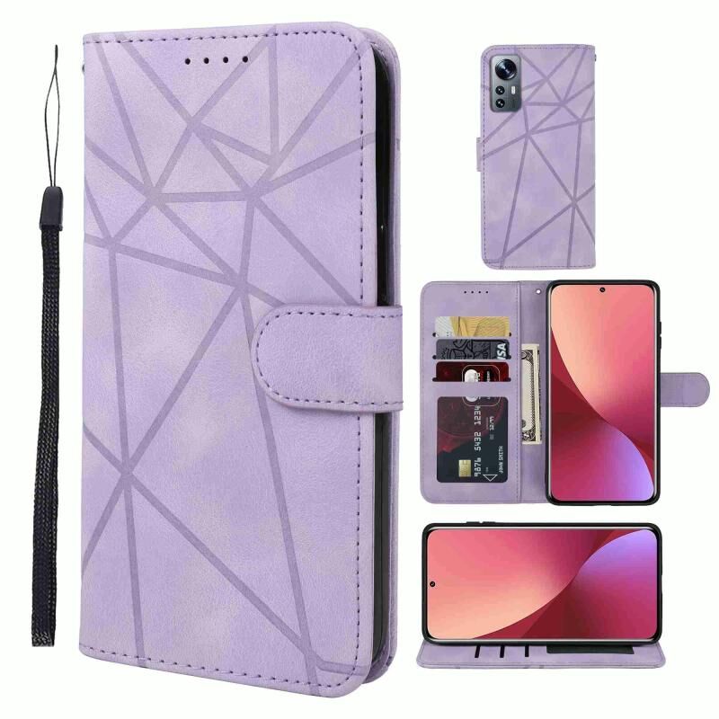 Για Xiaomi 12 δέρμα αίσθηση γεωμετρικές γραμμές δέρμα τηλέφωνο υπόθεση (μωβ)
