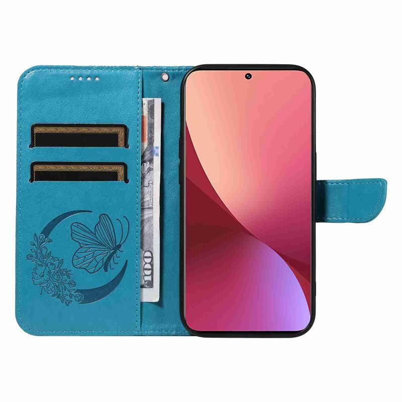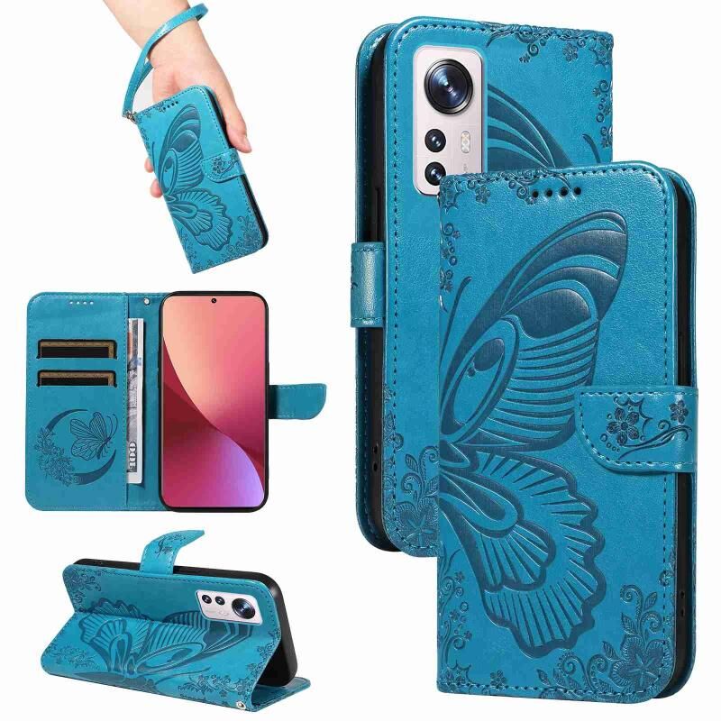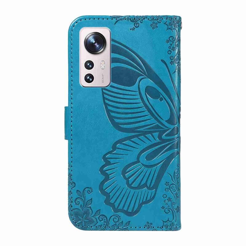 Θήκη τηλεφώνου από δέρμα με ανάγλυφο σχέδιο πεταλούδας για Xiaomi 12 (Μπλε)
