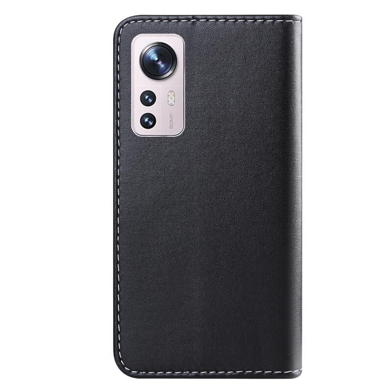 Για Xiaomi 12 τρίχρωμη ραφή οριζόντια Flip υπόθεση τηλεφώνου δέρμα (μαύρο)