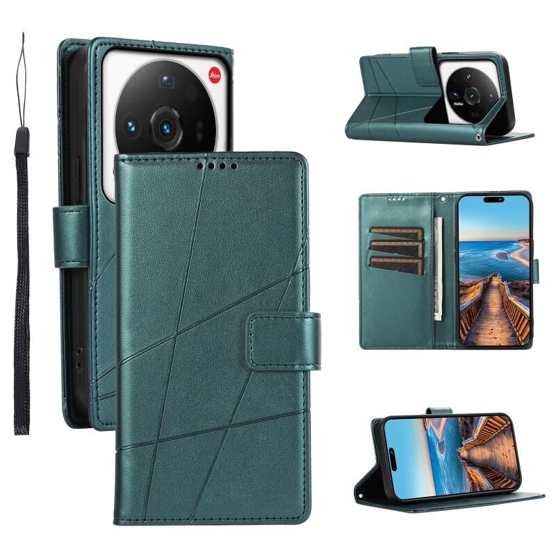 Θήκη τηλεφώνου Xiaomi 12 Ultra από γνήσιο δέρμα PU με ανάγλυφη υφή και μπλε χρώμα.