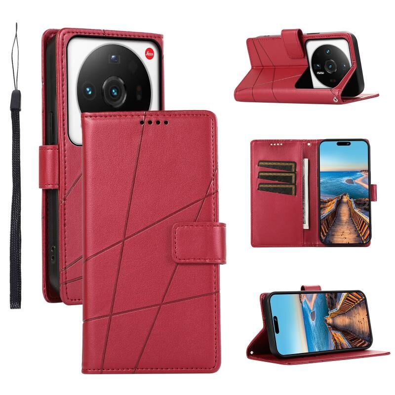 Θήκη τηλεφώνου Xiaomi 12 Ultra από γνήσιο δέρμα PU με ανάγλυφη υφή και μπλε χρώμα.