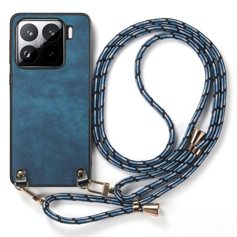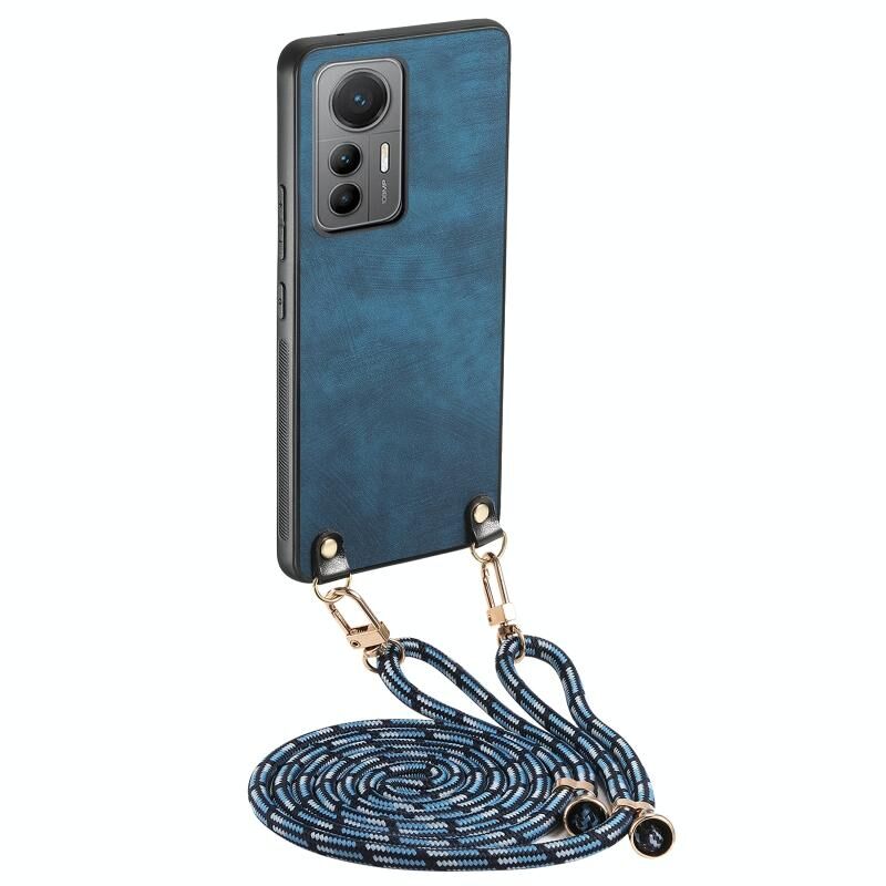 Για Xiaomi 12 εκλεκτής ποιότητας δέρμα PC πίσω κάλυψη υπόθεση τηλεφώνου με λουράκι σταυρού (μπλε)