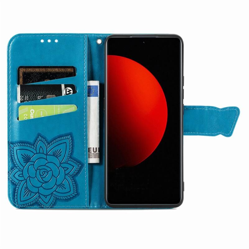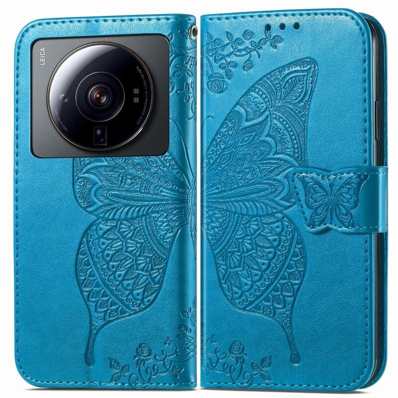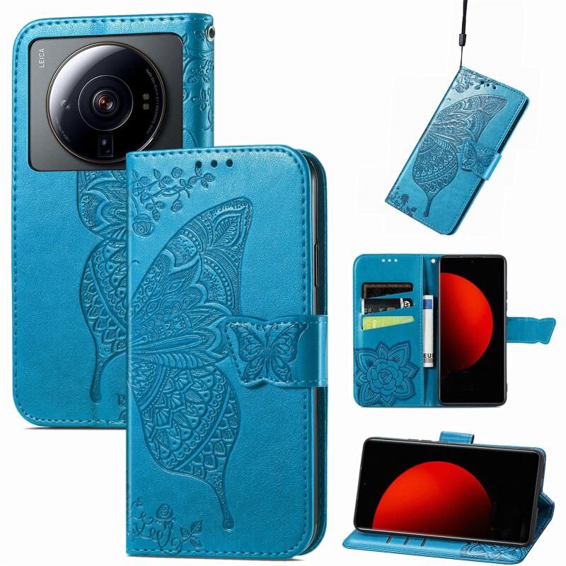 Θήκη τηλεφώνου από δέρμα με ανάγλυφο σχέδιο πεταλούδας και λουλουδιών για Xiaomi 12S Ultra (Μαύρο)