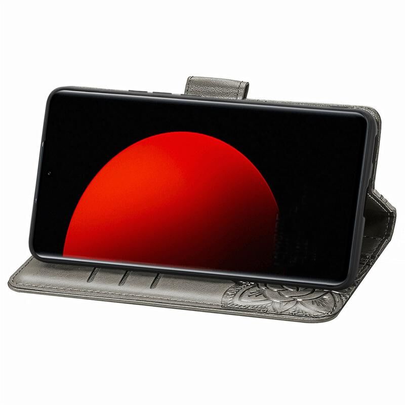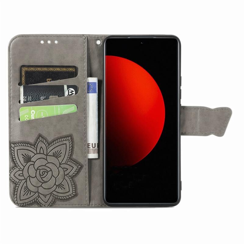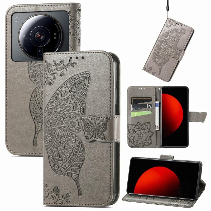 Θήκη τηλεφώνου από δέρμα με ανάγλυφο σχέδιο πεταλούδας και λουλουδιών για Xiaomi 12S Ultra (Μαύρο)