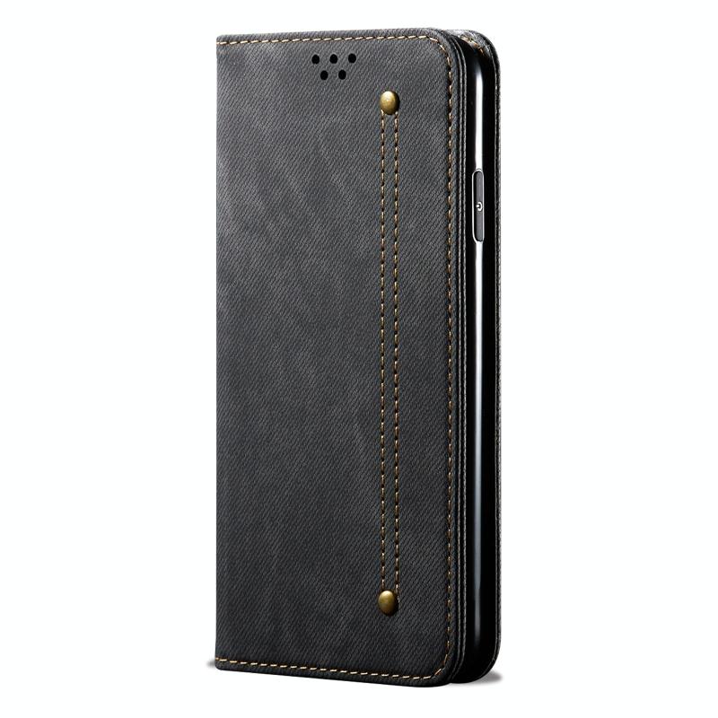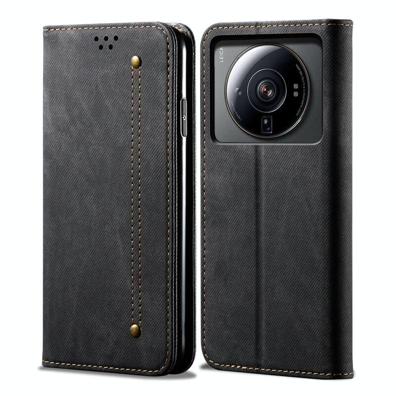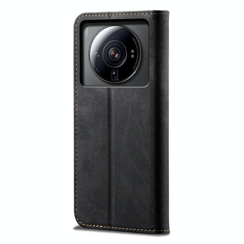 Για Xiaomi 12S Ultra Δερμάτινη Θήκη Flip με Υφή Denim (Μαύρο)