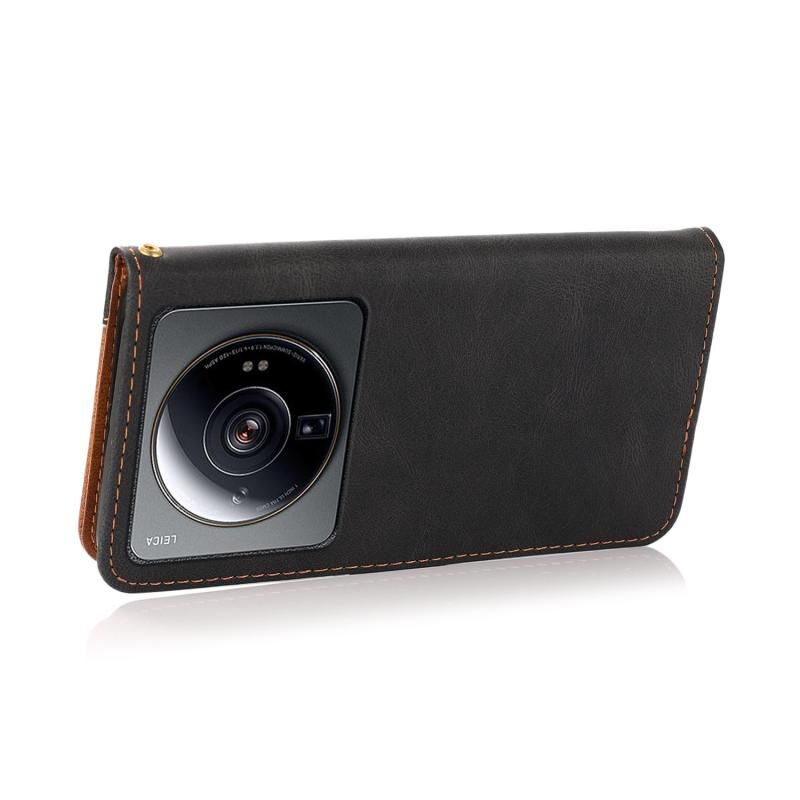 Για Xiaomi 12S Ultra Διπλό χρώμα ραφή δερμάτινη θήκη τηλεφώνου (Μαύρο καφέ)