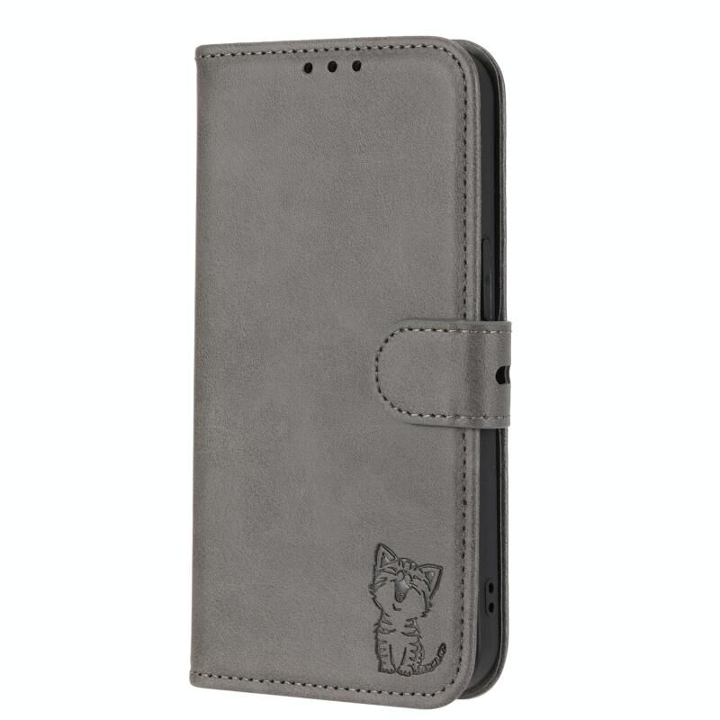 Για Xiaomi 12S Ultra Ανάγλυφο Happy Cat μοτίβο Flip δέρμα τηλέφωνο υπόθεση (γκρι)