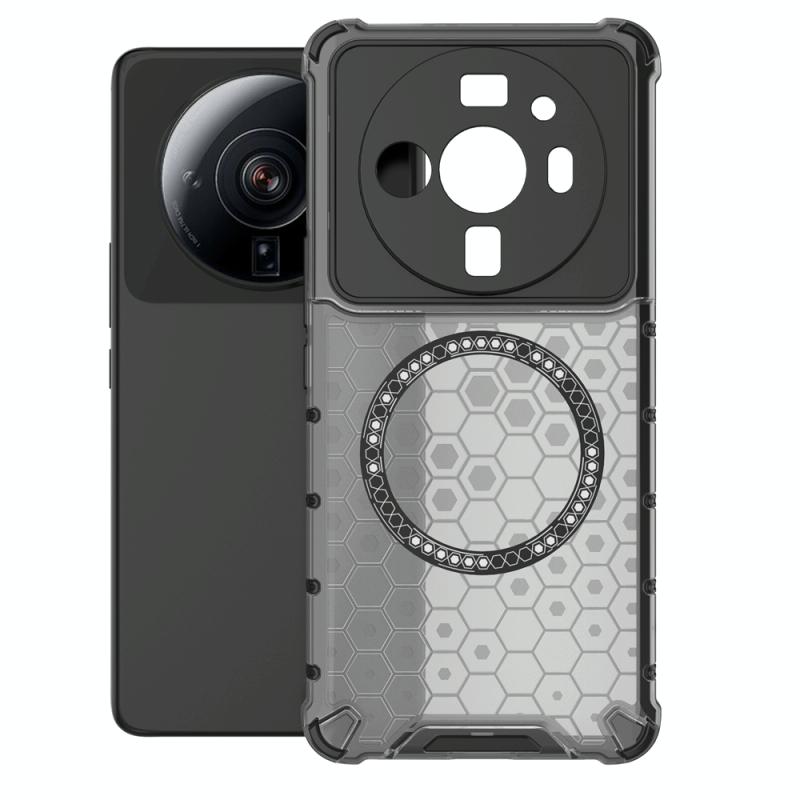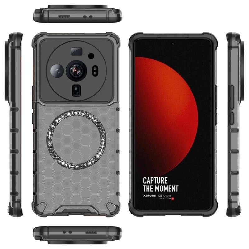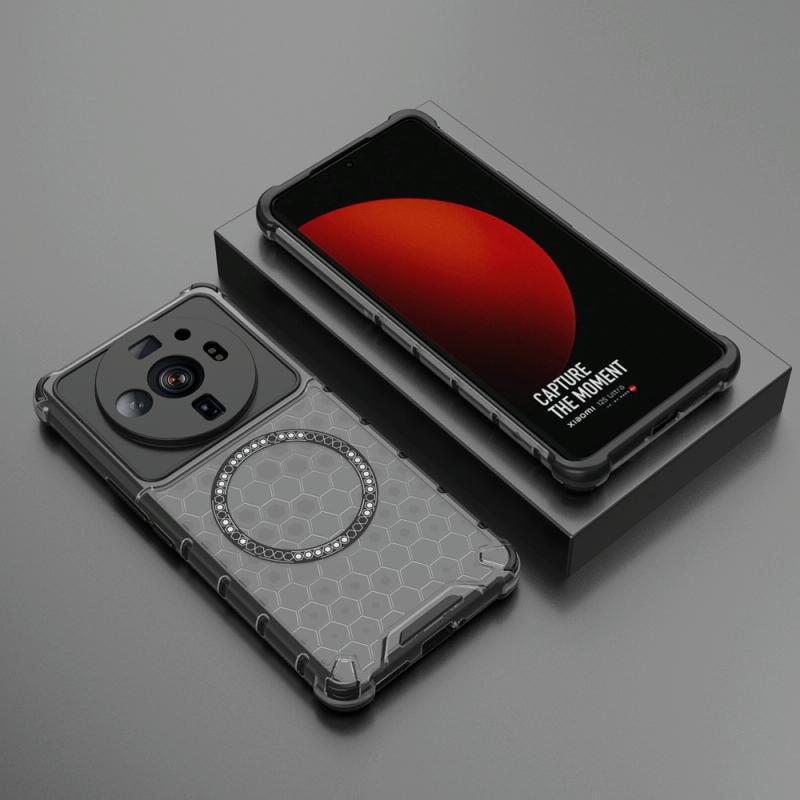 For Xiaomi 12S Ultra Honeycomb Magnetic Ring Shockproof Phone Case(Black)