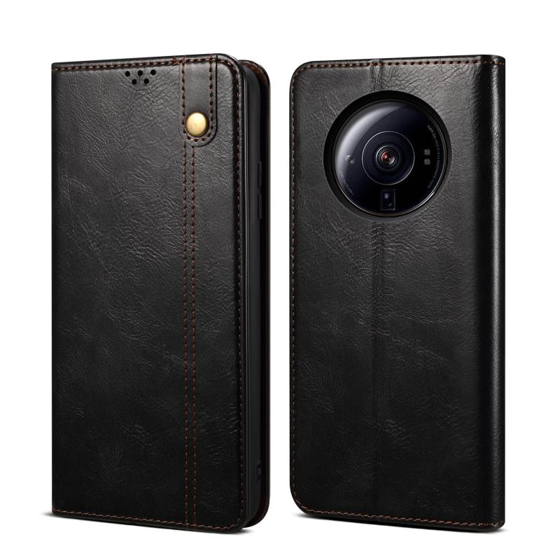 Θήκη Xiaomi 12S Ultra από Δέρμα με Υφή Crazy Horse & Λάδι Κεριού (Μαύρο)