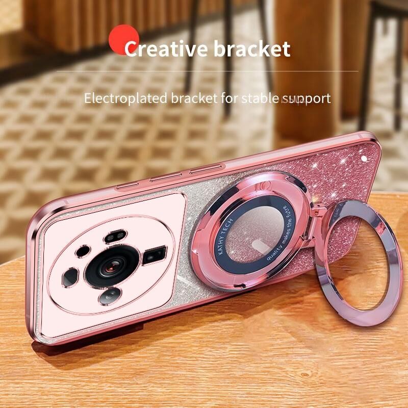 Για Xiaomi 12S Ultra Plated Gradient Glitter Γύρος κάτοχος TPU τηλέφωνο υπόθεση (μαύρο)