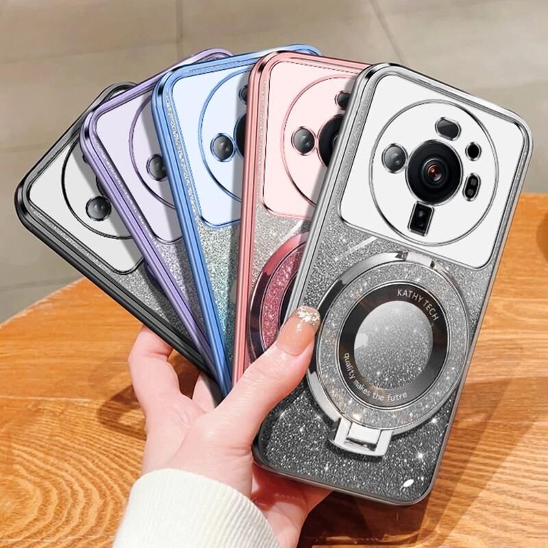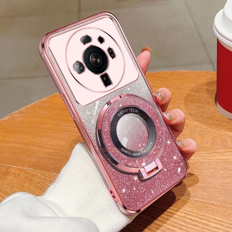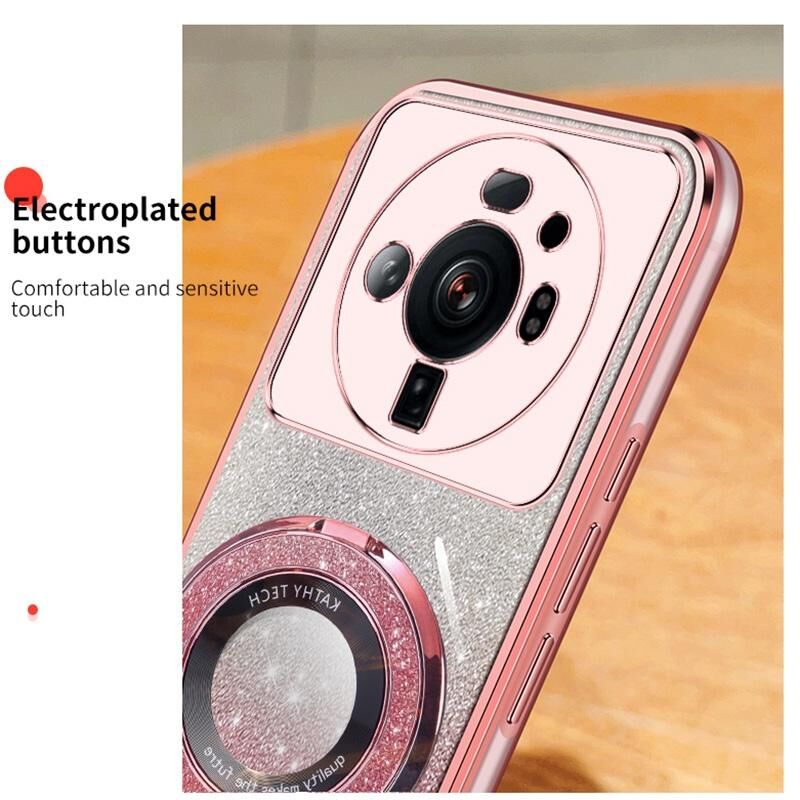 Για Xiaomi 12S Ultra Plated βαθμιδωτή Glitter Γύρος κάτοχος TPU τηλέφωνο υπόθεση (ροζ)