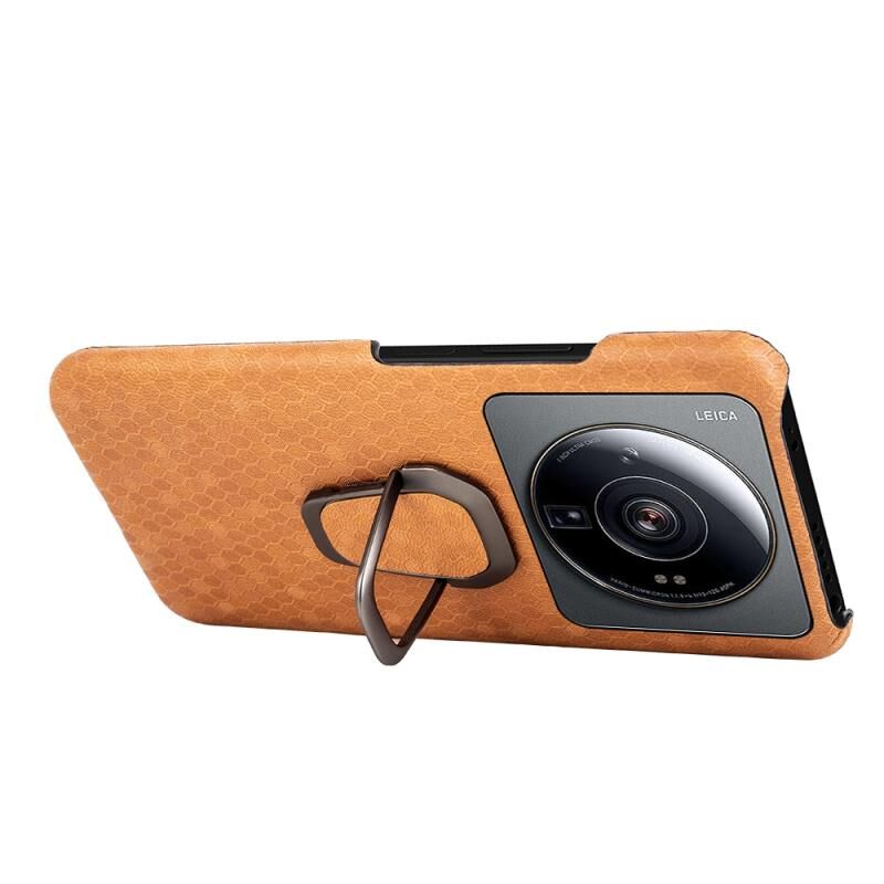 Για Xiaomi 12S Ultra Ring Holder Honeycomb PU υπόθεση τηλεφώνου (πορτοκαλί)