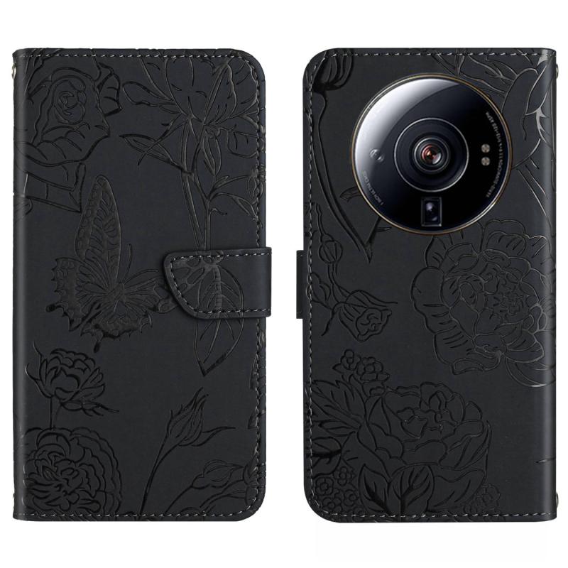 For Xiaomi 12S Ultra Skin Feel Butterfly Peony Embossed Leather Phone Case(Black)