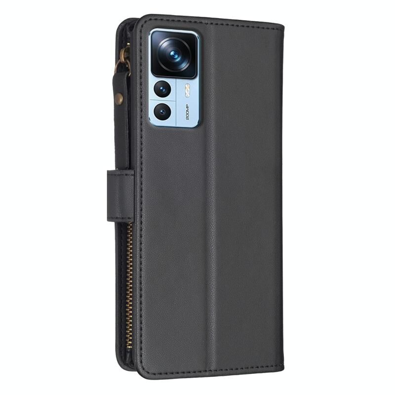 Για Xiaomi 12T / 12T Pro 9 υποδοχές καρτών φερμουάρ πορτοφόλι δέρμα Flip υπόθεση τηλεφώνου (μαύρο)