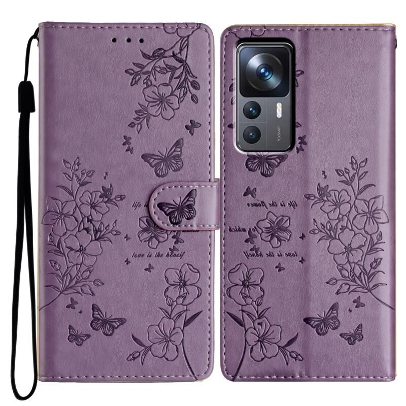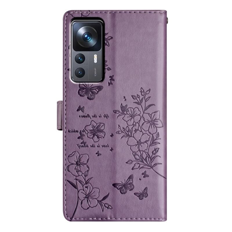 Θήκη τηλεφώνου από δέρμα με πεταλούδες και λουλούδια για Xiaomi 12T / 12T Pro (Χρυσό)