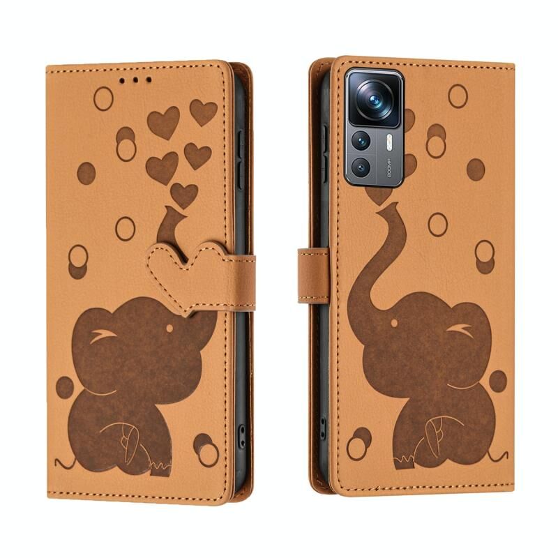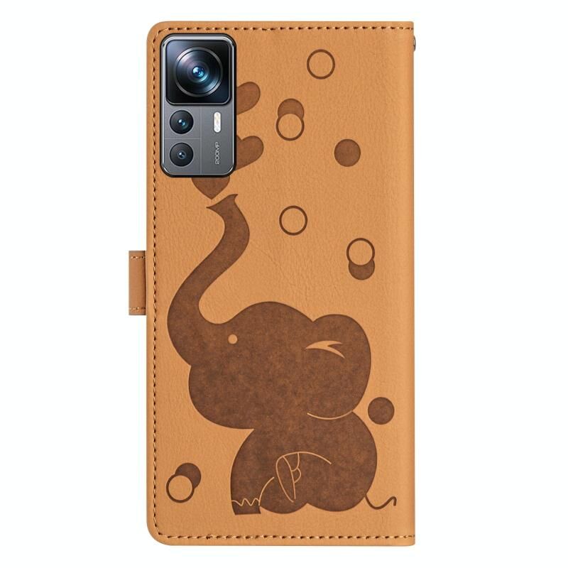 Θήκη τηλεφώνου από δέρμα με ανάγλυφο σχέδιο καρτούν ελέφαντα για Xiaomi 12T / 12T Pro (Μπλε)