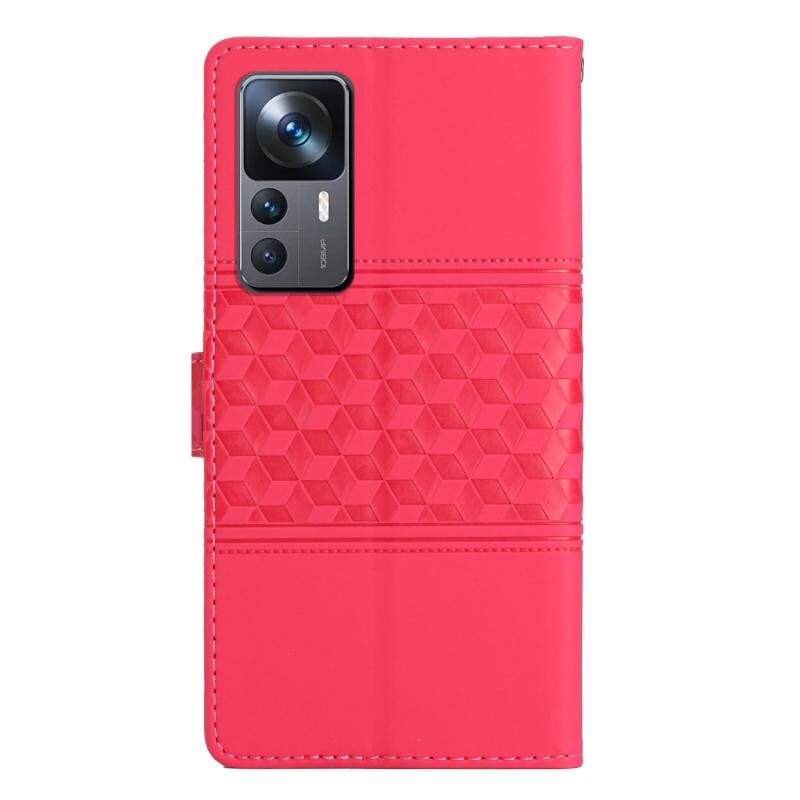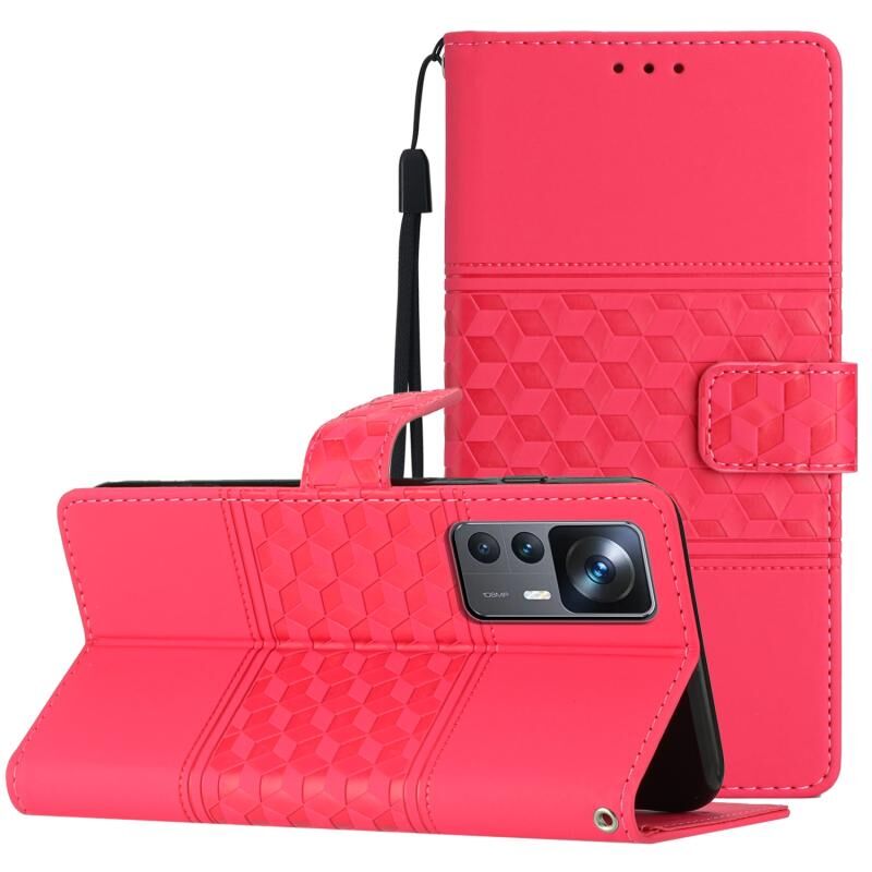 Για Xiaomi 12T / 12T Pro Diamond ανάγλυφο δέρμα αίσθηση δέρμα τηλέφωνο υπόθεση με κορδόνι (κόκκινο)