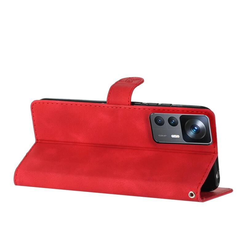 Για Xiaomi 12T / 12T Pro λουλούδι πεταλούδα ανάγλυφο μοτίβο δερμάτινη θήκη τηλεφώνου (κόκκινο)