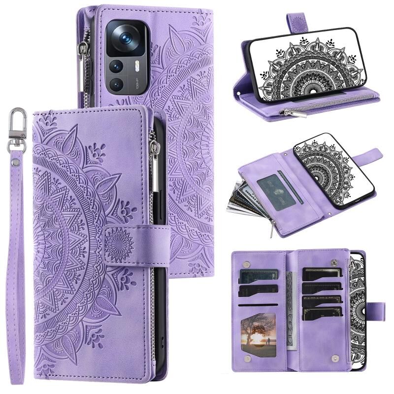 Για Xiaomi 12T / 12T Pro Multi-Card Totem φερμουάρ δερμάτινη θήκη τηλεφώνου (μωβ)
