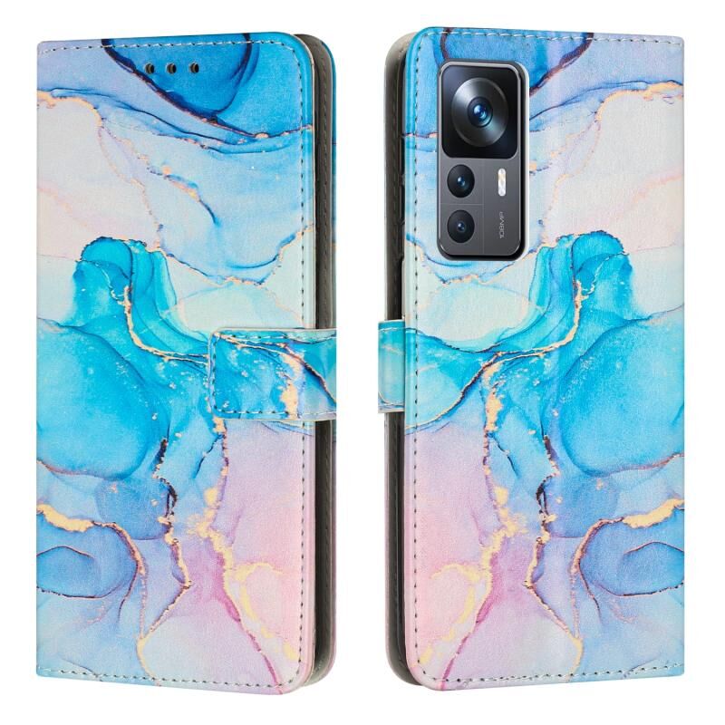 Θήκη τηλεφώνου από δέρμα με σχέδιο μαρμάρου (μπλε-πράσινο) για Xiaomi 12T / 12T Pro (Ροζ πράσινο)