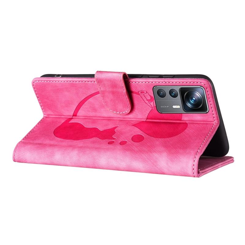 For Xiaomi 12T / 12T Pro Pen Heart Cat Embossed Leather Phone Case(Pink)