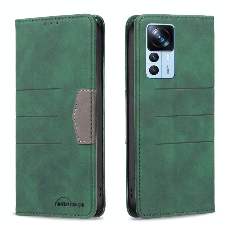 Για Xiaomi 12T / 12T Pro / Redmi K50 Ultra BF10 Χρώμα μπλοκ μαγνητικό Flip δερμάτινη θήκη τηλεφώνου (πράσινο)