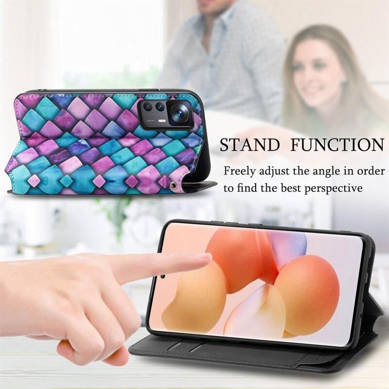 Θήκη για Xiaomi 12T / 12T Pro / Redmi K50 Ultra CaseNeo, πολύχρωμη μαγνητική θήκη δερμάτινου τηλεφώνου (Μωβ Λέπια)