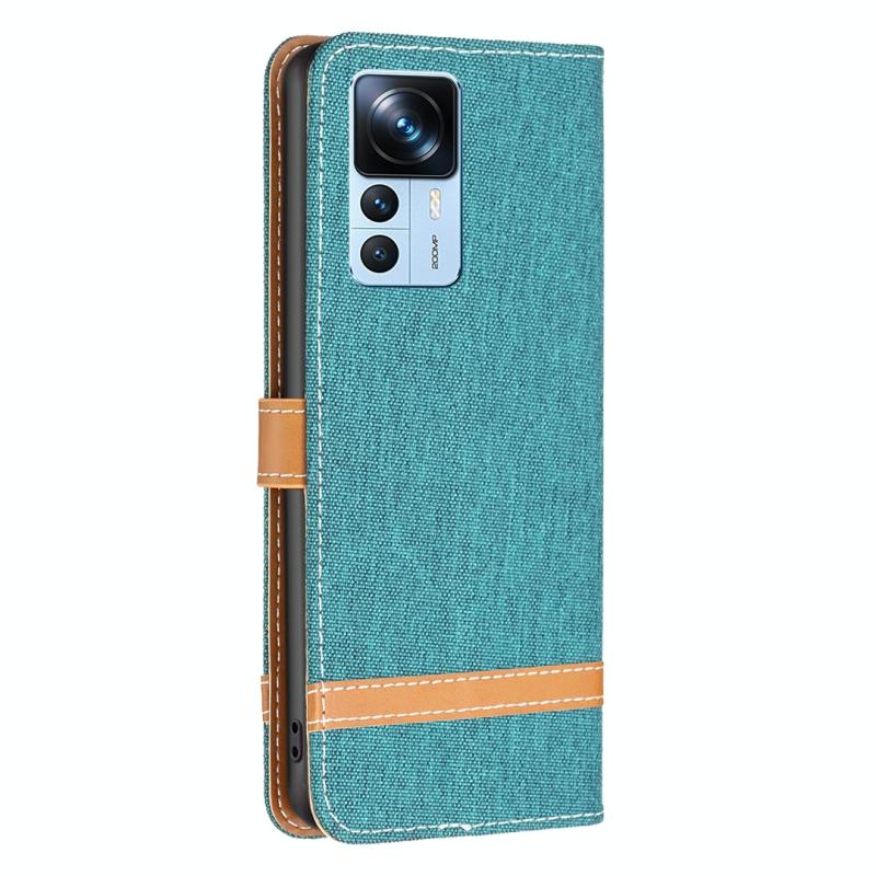 Θήκη τηλεφώνου από δέρμα με υφή τζιν και χρωματικό σχέδιο για Xiaomi 12T / 12T Pro / Redmi K50 Ultra (πράσινο)