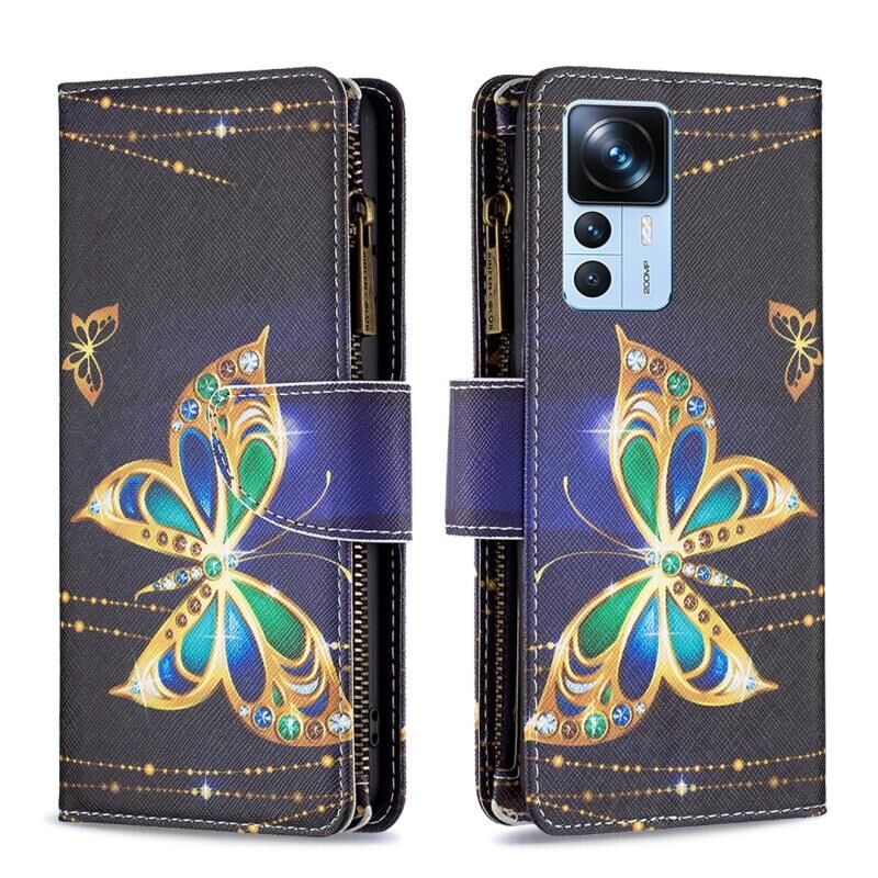 Θήκη τηλεφώνου από δέρμα με φερμουάρ και πολύχρωμο σχέδιο για Xiaomi 12T / 12T Pro / Redmi K50 Ultra (Μεγάλη Πεταλούδα)